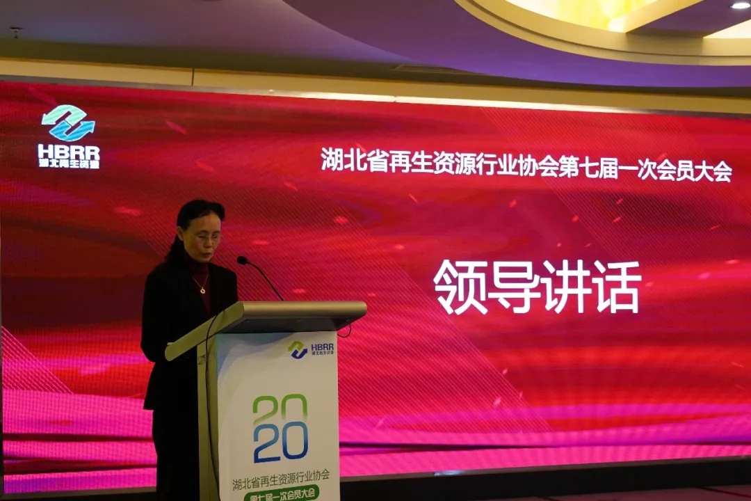 2020年11月26日,湖北省再生资源行业协会第七届一次会员大会在武汉市江城明珠豪生大酒店隆重举行,来自省再生资源行业协会的会员单位代表一百余人参加了会议。湖北省供销合作总社二级巡视员周春燕主任,合作指导处处长钱春林,湖北省生态环境厅科技合作处处长肖拥军,湖北省商务厅流通处副处长曾柳,中国再生资源回收利用协会副秘书长曹阳出席了会议。会议由协会第六届理事会会长单位湖北省再生资源集团有限公司总经理张孝勇主持。